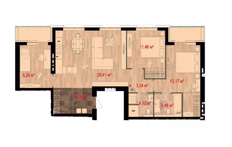 ** Состояние квартиры - идеальное. Общая площадь: 86 кв.м., имеется 2 лоджии (каждая по 4 кв.м.), просторная кухня-гостиная: 28 кв.м. и три изолированные комнаты: спальня (12 кв.м.) с оборудованной гардеробной (3 кв.м.) и выходом на лоджию (4 кв.м.); 1 детская (11,5 кв.м.); 2 детская (9 кв.м.) с выходом на вторую лоджию (4 кв.м.). Два санузла: туалет (инстоляция + раковина) и просторная ванная комната (6 кв.м.) с большой зоной хранения и дополнительным унитазом. Удобная прихожая с большим гардеробом (9 кв.м.).