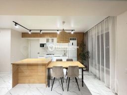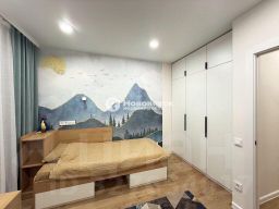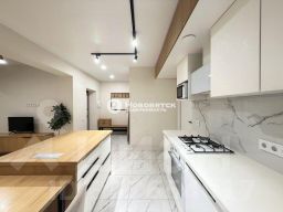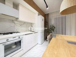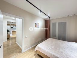 ** В квартире выполнен современный, качественный ремонт: окна - пластиковые стеклопакеты, пол - стяжка, покрытие ламинат 33 класса и керамогранит. Натяжной потолок с люстрой и точечными светильниками. Огромное количество выключателей и розеток, в том числе, выключатели "проходные" - все выполнено для максимального комфорта жильцов. Куда бы вы не присели, везде будет рядом розетка, для вашего удобства. Дополнительное освещение - трековые светильники, для удобного использования и акцентирования необходимой зоны. Во всех комнатах выведено оборудование под ТВ-зону.