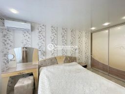 * Особенности квартиры: общая площадь: 88 кв.м. и плюс две широкие лоджии 8 кв.м. и 6 кв.м. Комнаты: 22 кв.м., 19 кв.м. и 14 кв.м. (изолированы). Легко можно перепланировать в Евро-4 (стены передвигать не надо), получится кухня-гостиная: 22 кв.м. и 3 спальни. Окна (пластиковые стеклопакеты) выходят на разные стороны дома - хорошее проветривание и освещение. Лоджии с алюминиевым остеклением. В половине квартиры выполнен качественный, современный ремонт (в прихожей и двух комнатах) с заменой пола: сухая стяжка с керамзитом и покрытием ГВЛ, сверху ламинат 33 класса. Везде проведена новая электропроводка, с двойным сечением, все выведено на отдельный щит с тумблерами на каждое помещение, электроплита на отдельный кабель. В каждую комнату заведен проводной интернет и ТВ-кабель. В спальне и гостиной установлены новые, бесшумные кондиционеры. В квартире натяжные потолки. Санузел раздельный. Просторная, квадратная прихожая.