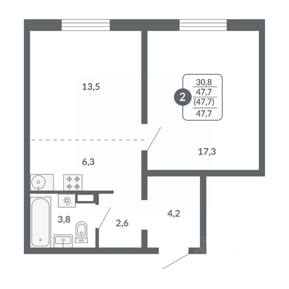 Общая площадь47,7 м²