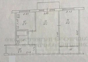 Планировка квартиры: кухня - 6,1 м2, комнаты - 19,1 и 11,6 м2 с кладовкой - 2,2 м2, санузел - 3,0 м2, коридор 4,5 м2.