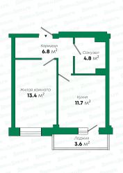 Квартира общей площадью 38,5 кВ. метров включает в себя: