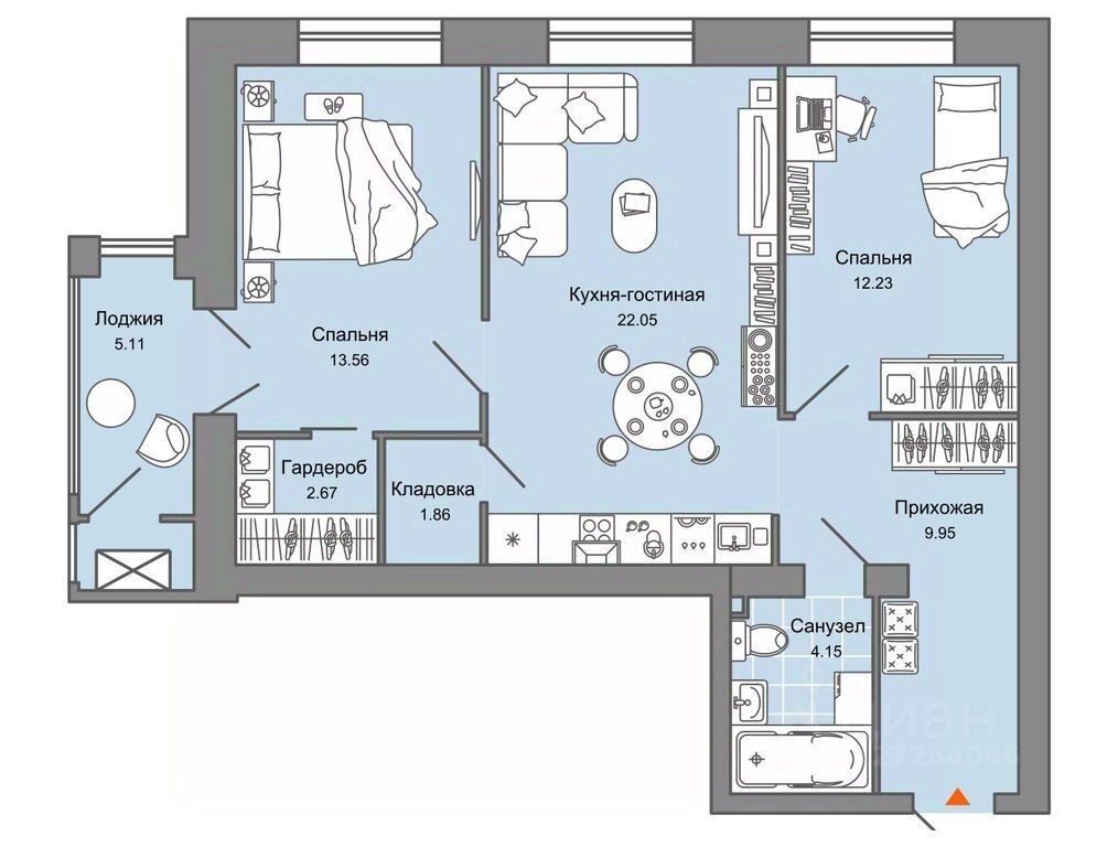 Продается 2-комнатная квартира в 3 км от Зубаревского леса, площадью 70.00 кв. м. Квартира находится в жилом комплексе комфорт-класса ЗНАК от девелопера "Железно".