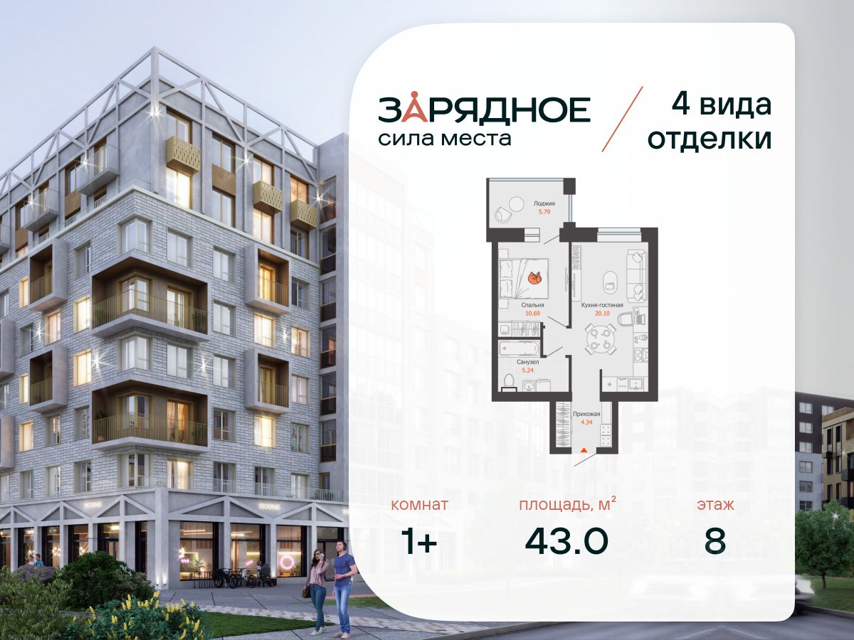Продается 1-комнатная квартира, корпус 4/2, площадь 43.00 кв. Квартира находится в жилом комплексе комфорт-класса "Зарядное" (ГК "Железно").
