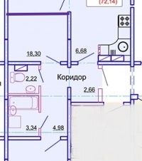 Общая площадь квартиры 66,8 квадратных метров. Планировка - распашонка, окна выходят на север и юг. Внутреннее пространство квартиры включает в себя: