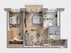 * На фото представлен вариант размещения мебели и организации жилого пространства.