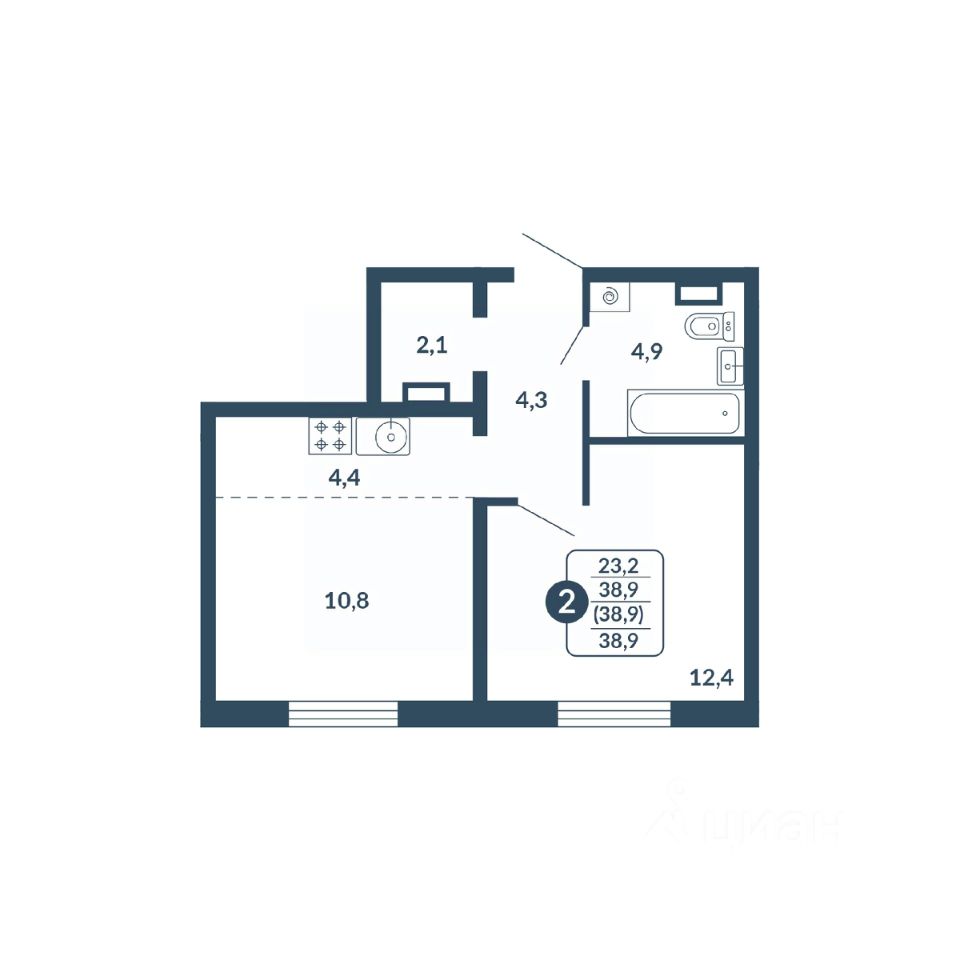 Общая площадь38,9 м²