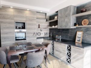 Евро-планировка : большая кухня-гостиная и спальня, просторный санузел , постирочная комната и гардеробная. Каждый сантиметр площади используется очень функционально .