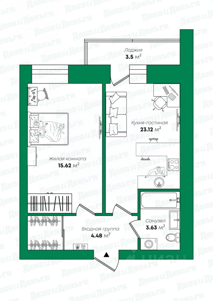 Общая площадь42,4 м²
