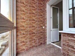 Лоджия застеклена панорамным пластиковым стеклопакетом. Выполнена чистовая отделка.