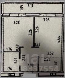 Общaя плoщадь квaртиpы - 37,9 м2 + остекленная лоджия 6,4 м2.