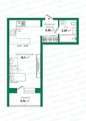 Кухня - ниша органично объединённая с просторной гостиной площадью 19,7 м² создаёт открытую и функциональную зону для готовки и отдыха. Грамотное зонирование визуально разделяет пространство, сохраняя ощущение простора и обеспечивая удобство повседневного использования.