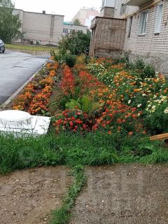 Территория дома просторная,ухоженная,с большим количеством цветов и дорожкой к остановке общественного транспорта (100 м до остановки)