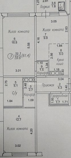 ПЛАНИРОВКА квартиры формата "евро-3", кухня-гостиная и 2 отдельные комнаты, совмещенные туалет и ванна, просторный коридор, утепленная лоджия, есть отдельная гардеробная в прихожей.