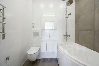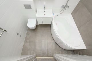 - санузел в керамической плитке, установлены подвесная раковина с тумбой, шкаф с зеркалом и подсветкой, глубокая и широкая акриловая ванная, подвесной унитаз, душевая стойка с тропическим душем, полотенцесушитель, предусмотрены выводы для слива воды стиральной машины и водонагревателя,