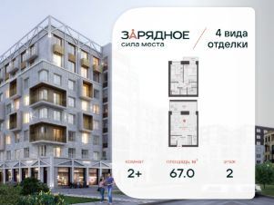 Продается 2-комнатная квартира, корпус 4/1, площадь 67.00 кв. Квартира находится в жилом комплексе комфорт-класса "Зарядное" (ГК "Железно").