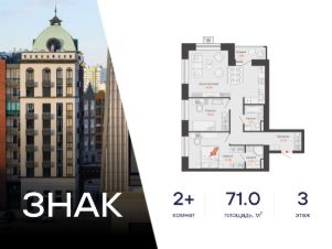Продается 2-комнатная квартира в 3 км от Зубаревского леса, площадью 71.00 кв. м. Квартира находится в жилом комплексе комфорт-класса ЗНАК от девелопера "Железно".