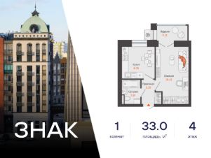 Продается 1-комнатная квартира в 3 км от Зубаревского леса, площадью 33.00 кв. м. Квартира находится в жилом комплексе комфорт-класса ЗНАК от девелопера "Железно".