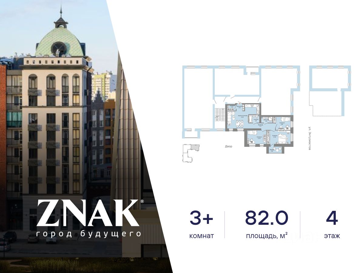 Продается 3-комнатная квартира в 3 км от Зубаревского леса, площадью 82.00 кв. м. Квартира находится в жилом комплексе комфорт-класса ЗНАК от девелопера "Железно".