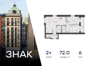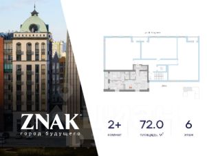 Продается 2-комнатная квартира в 3 км от Зубаревского леса, площадью 72.00 кв. м. Квартира находится в жилом комплексе комфорт-класса ЗНАК от девелопера "Железно".