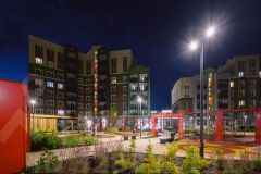 - Трехуровневое освещение и архитектурная подсветка преображает ночной облик всего комплекса.