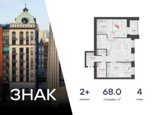Продается 2-комнатная квартира в 3 км от Зубаревского леса, площадью 68.00 кв. м. Квартира находится в жилом комплексе комфорт-класса ЗНАК от девелопера "Железно".