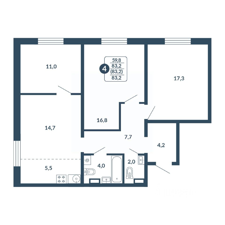 Общая площадь83,2 м²