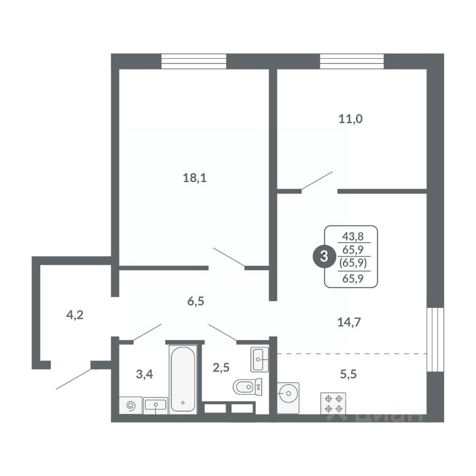 Общая площадь65,9 м²