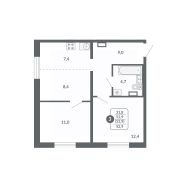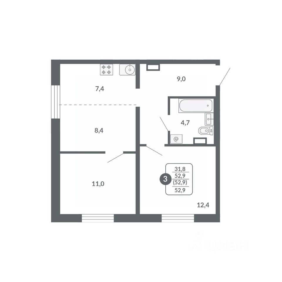 Общая площадь52,9 м²