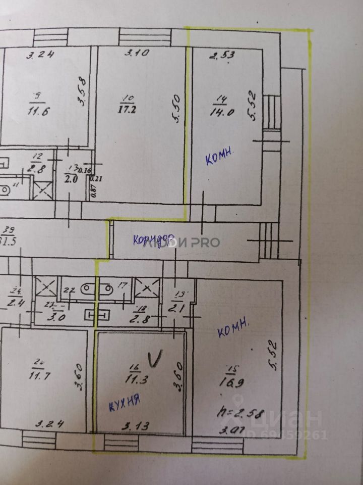 В комнатах площадью 16,9 кв.м. и 14,0 кв.м. установлены пластиковые окна, на полу ламинат, потолок натяжной.