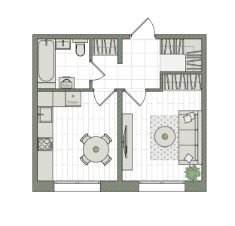 1-комнатная, 34 м², 369 по адресу Прибрежный, д. 6 (2 очередь) Тип дома: Утепленная панель. Жилой комплекс "РИВЕР ПАРК"Преимущества покупки квартиры в новостройке напрямую от застройщика КСМ: