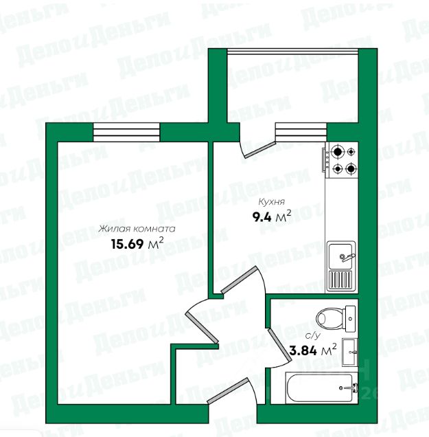 ПЛАНИРОВКА КВАРТИРЫ 33 кв.м. предусматривает: