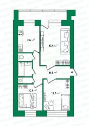 - жилые комнаты площадью 17,4 и 12,5 и 10,1 кв.м.