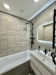 Выполнены работы: стяжка пола, замена электрики, замена труб водоснабжения и канализации, новые окна и двери, установлена новая сантехника. санузел в кафеле, пол - керамогранит. Ремонт сделан по стильному дизайн-проекту.