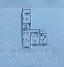 Трёхкомнатная квартира-распашонка в центре города.