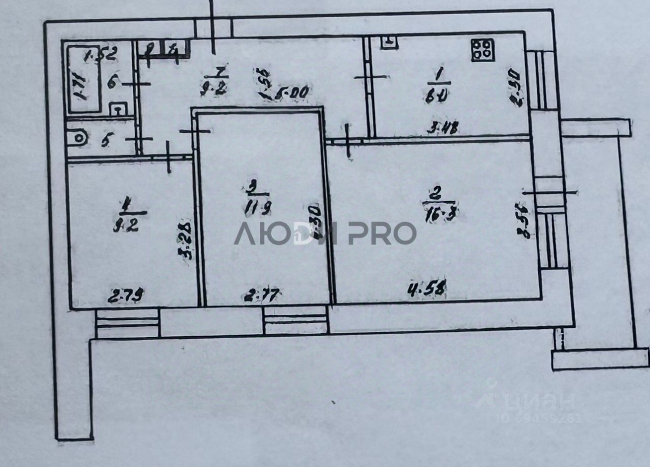 Продается трехкомнатная квартира в доме из полноценного кирпича 1987 года постройки.