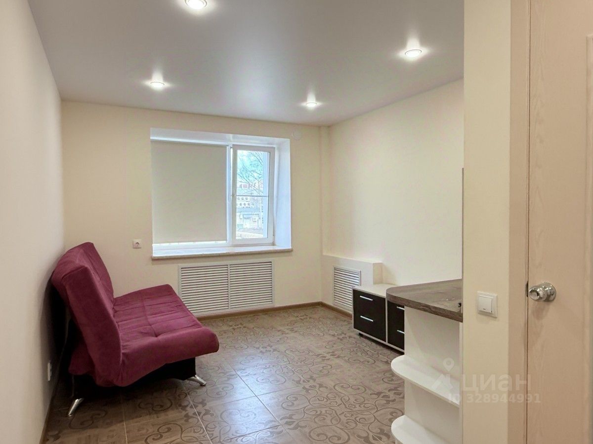 В продаже уютная квартира-студия площадью 18 кв. м в кирпичном доме 1980 год постройки. Дом расположен в Нововятске до переезда.