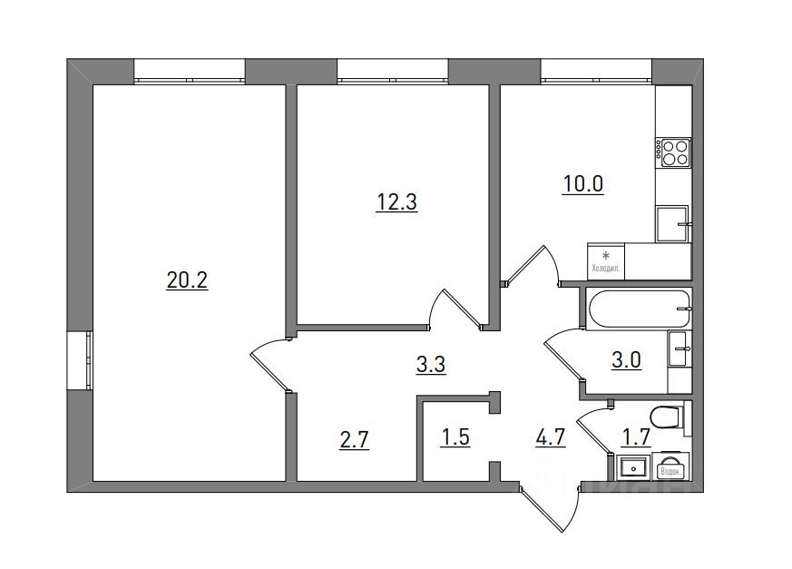 2-комнатная, 59.4 м², 412 по адресу Прибрежный, д. 6 (2 очередь) Тип дома: Утепленная панель. Жилой комплекс "РИВЕР ПАРК"Преимущества покупки квартиры в новостройке напрямую от застройщика КСМ: