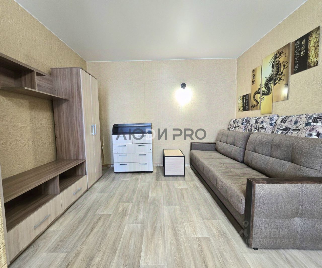 Квартира удачной ппланировки для однокомнатной — вместительная прихожая, кухня 7,5 квадратов правильной формы. Комната 19 метров — уютная, просторная. Застеклённый балкон, отделанный изнутри. Солнечная сторона, в квартире предусмотрены жалюзи. Натяжные потолки. Санузел в пластике.В квартире остаётся мебель и техника: стенка, диван, комод, прихожая,