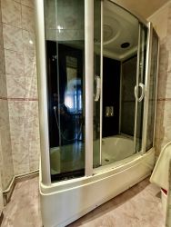 В квартире сделан косметический ремонт : натяжные потолки в комнатах и коридоре, пластиковые окна, линолеум на полу, санузел и ванная в кафеле.