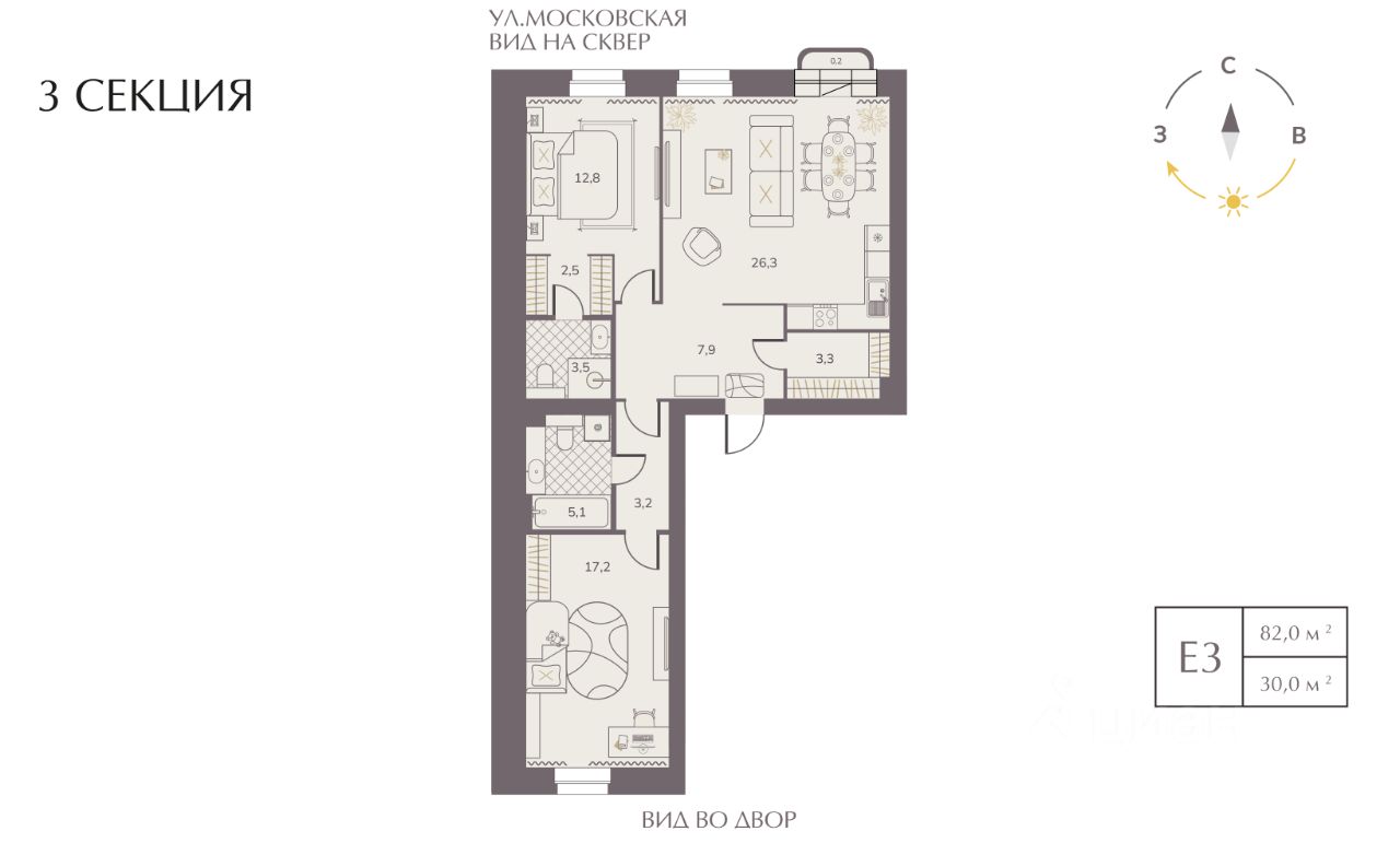 Вашему вниманию предлагается 2-комнатная квартира 120 площадью 82 квадратных метров на 5 этаже. Сдача дома - 3 квартал 2027