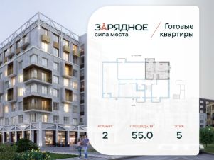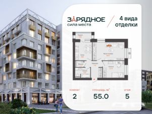 Продается 2-комнатная квартира, корпус 4/1, площадь 55.00 кв. с предчистовой отделкой. Квартира находится в жилом комплексе комфорт-класса "Зарядное" (ГК "Железно").