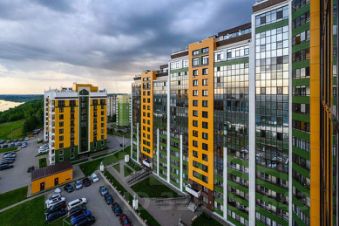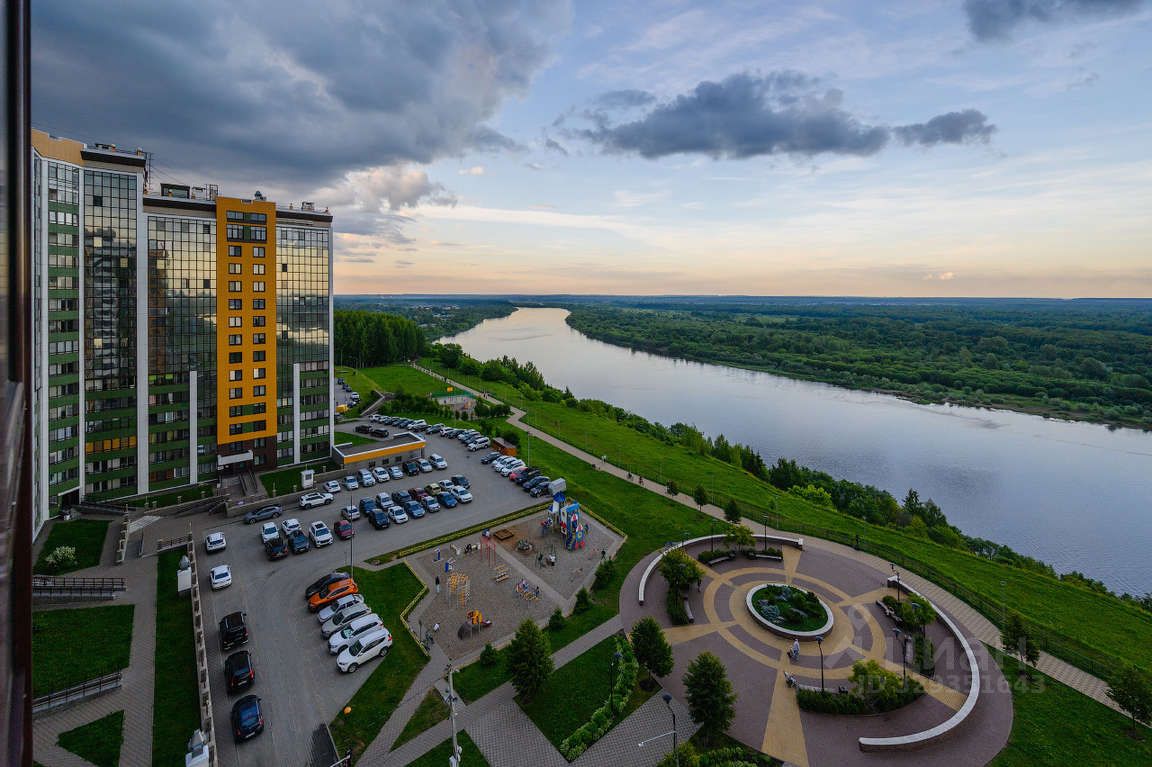 Панорамные окна видом на Вятку и прогулочную зону микрорайона.