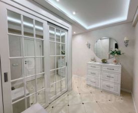 Выполнен дизайнерский евроремонт с использованием дорогостоящих материалов, интерьер решен в классических спокойных тонах. Квартира полностью меблирована и в таком состоянии передается новым собственникам за исключением некоторых памятных вещей. Вся мебель выполнена из качественных материалов в светлых тонах.