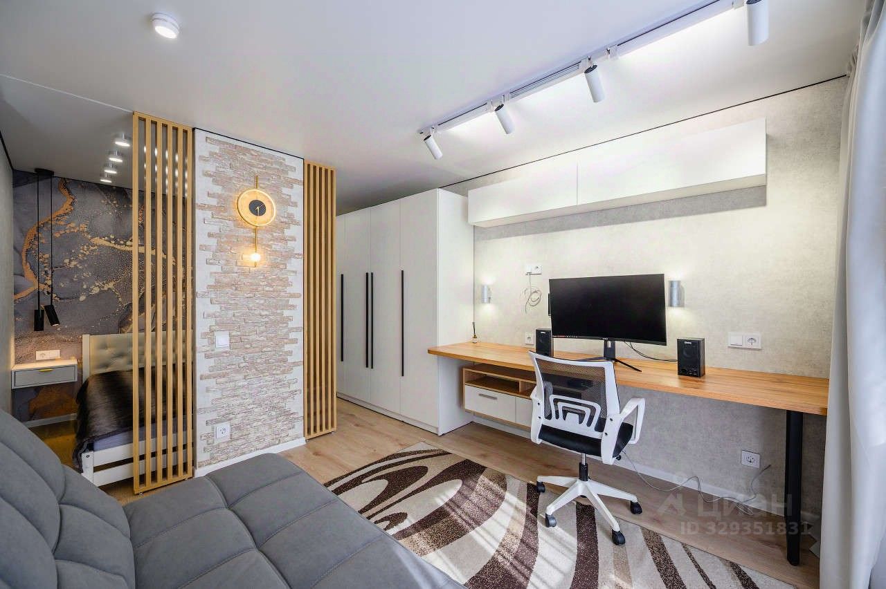 Продумана логика квартиры: Есть спальная зона с двуспальной кроватью, зона работы- большой компьютерный стол, зона отдыха- есть диван, 3 точки вывода под ТВ зону. Продумана зона хранения, распашной шкаф, комоды, шкафчики и тд. Функциональный , удобный кухонный гарнитур .