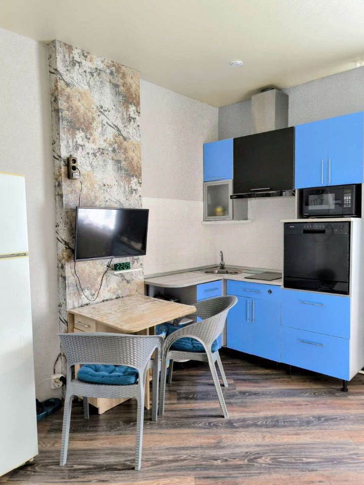 Новым собственникам остается: кухонный гарнитур, вытяжка, варочная панель, стол, диван, шкаф, встроенный шкаф- купе в прихожей.