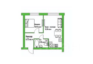 Площадь: Общая 40,7 м2, кухня 18,98 м2 , спальня 10,92 м2