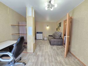 Квартира удачной ппланировки для однокомнатной вместительная прихожая, кухня 7,5 квадратов правильной формы. Комната 19 метров уютная, просторная. Застеклённый балкон, отделанный изнутри. Солнечная сторона, в квартире предусмотрены жалюзи. Натяжные потолки. Санузел в пластике.В квартире остаётся мебель и техника: стенка, диван, комод, прихожая,