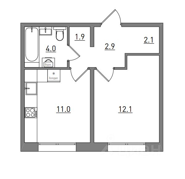 1-комнатная, 34 м², 419 по адресу Прибрежный, д. 6 (2 очередь) Тип дома: Утепленная панель. Жилой комплекс "РИВЕР ПАРК"Преимущества покупки квартиры в новостройке напрямую от застройщика КСМ: