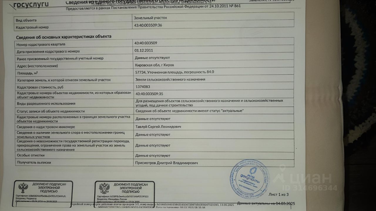 Кадастровый номер: 43:40:003509:36